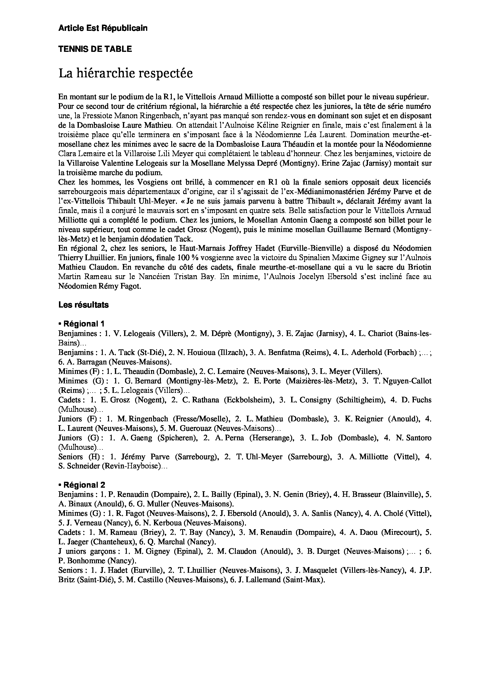 Ecole de Tennis de Table